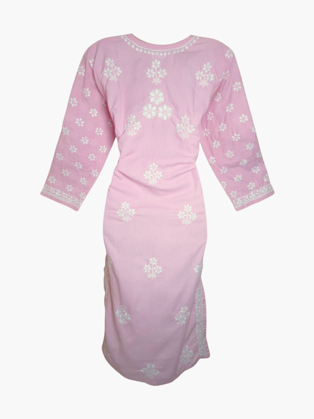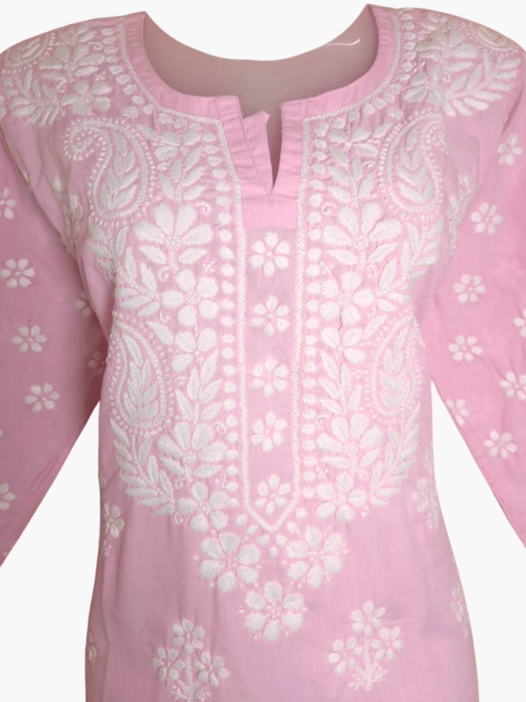 • Authentic hand-done chikankari embroidery across the front panel, back, and full-length sleeves
