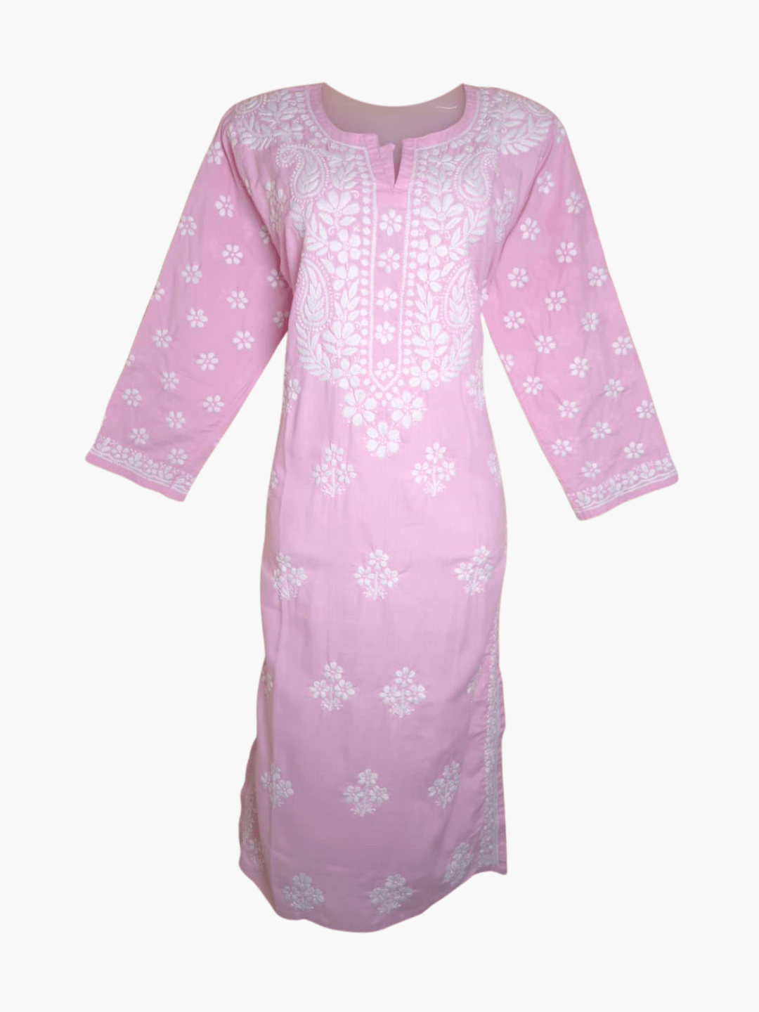 Inaya Hand-Embroidered Solid Cotton Chikankari Straight Long KurtaInaya Hand-Embroidered Solid Cotton Chikankari Straight Long Kurta