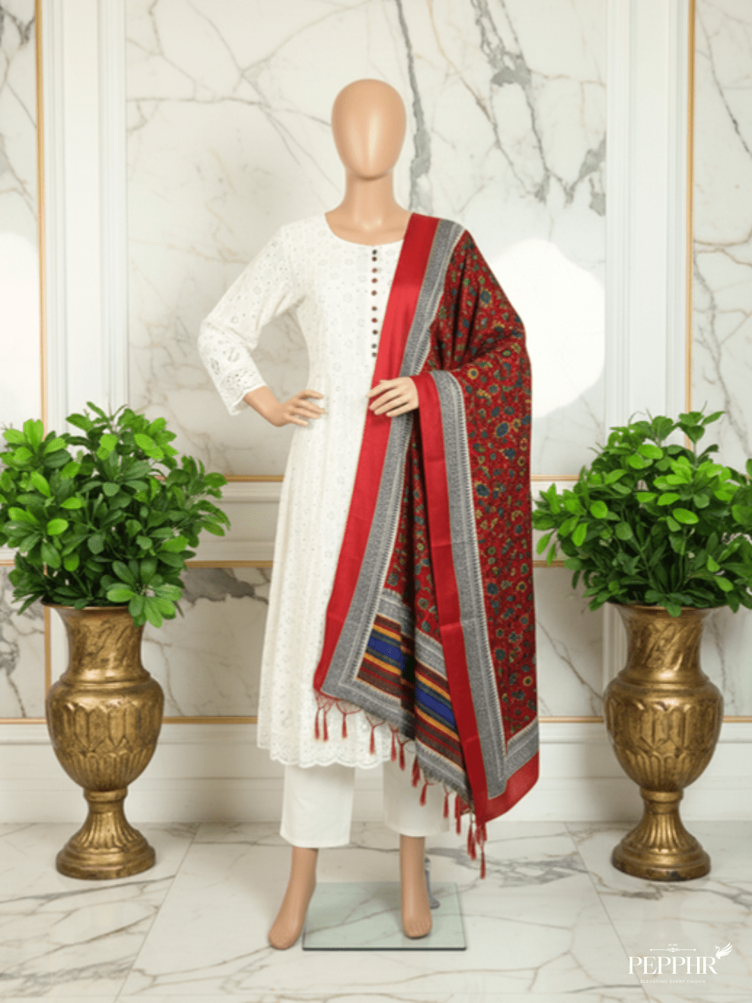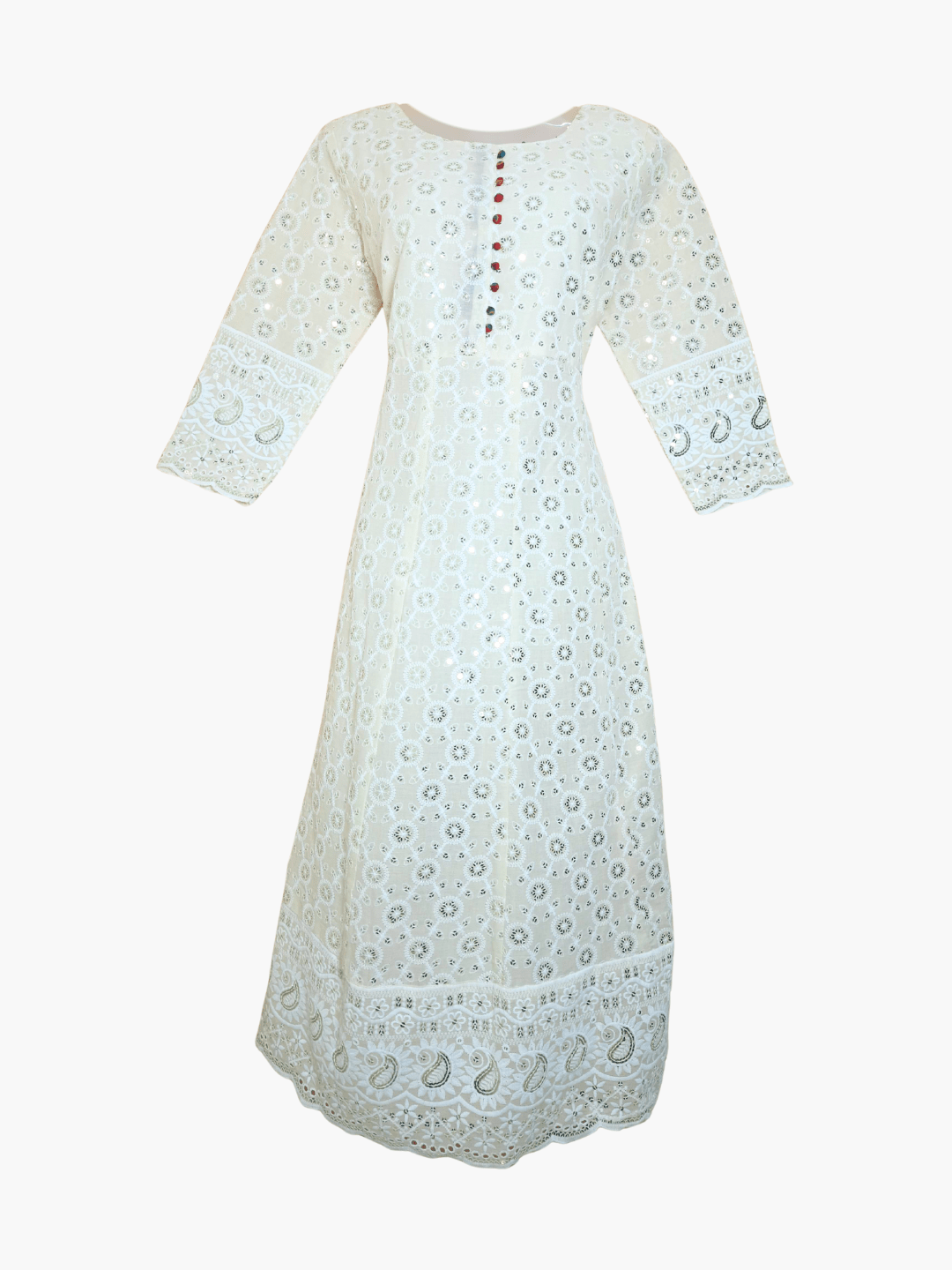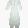 Step into luminous sophistication with Sitara Jahan, an off-white embroidered Anarkali designed for women who cherish grace rooted in tradition. Crafted from breathable premium cotton, this ensemble blends chikankari-inspired charm with artisanal embroidery, making it an evergreen addition to your festive and occasion wear wardrobe.