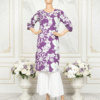 • Oversized ivory florals that contrast beautifully with the rich purple base