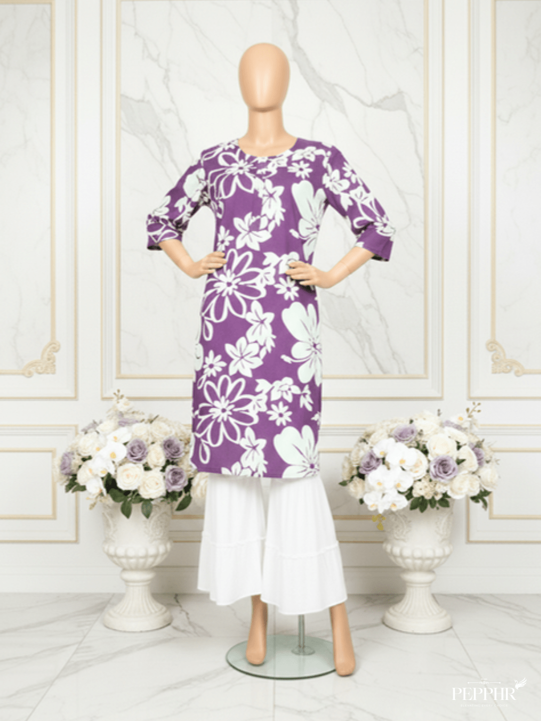 Make a graceful statement with Pepphr’s Viola Luxe Purple Kurti, where premium fabric meets fresh, modern florals.