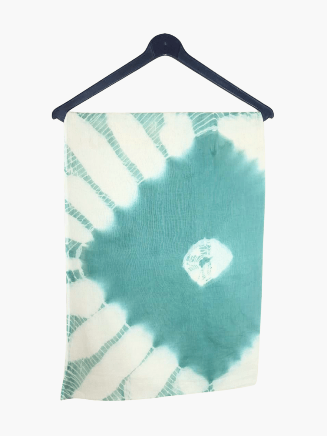 A soft pastel green tie-dye dupatta, bringing balance and serene charm to the outfit